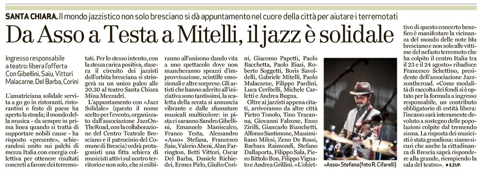 28 September 2016Aiutare Amatrice è come nuotare in un oceano di jazz